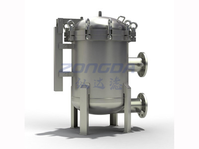 袋式过滤机是一种压力式过滤装置,主要有过滤筒体、过滤筒盖和快开机构、不锈钢滤袋加强网等主要部件组成,滤液由过滤机外壳的旁侧入口管流入滤袋,滤袋本身是装置在加强网篮内,液体渗透过所需要细度等级的滤袋即能获得合格的滤液,杂质颗粒被滤袋拦截。该机更换滤袋十分方便,过滤基本无物料消耗。
